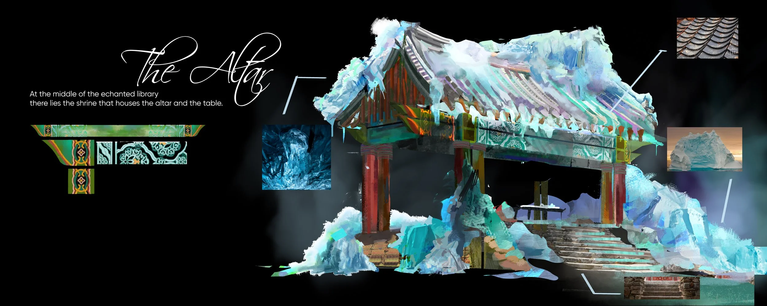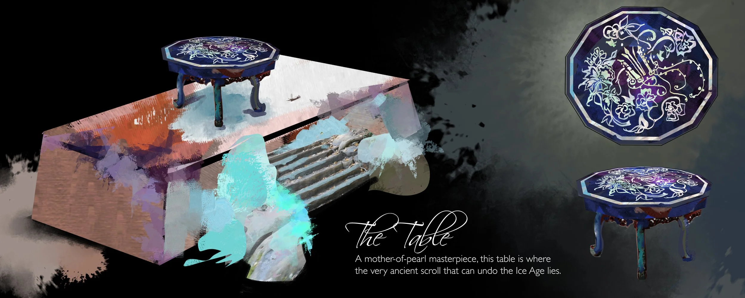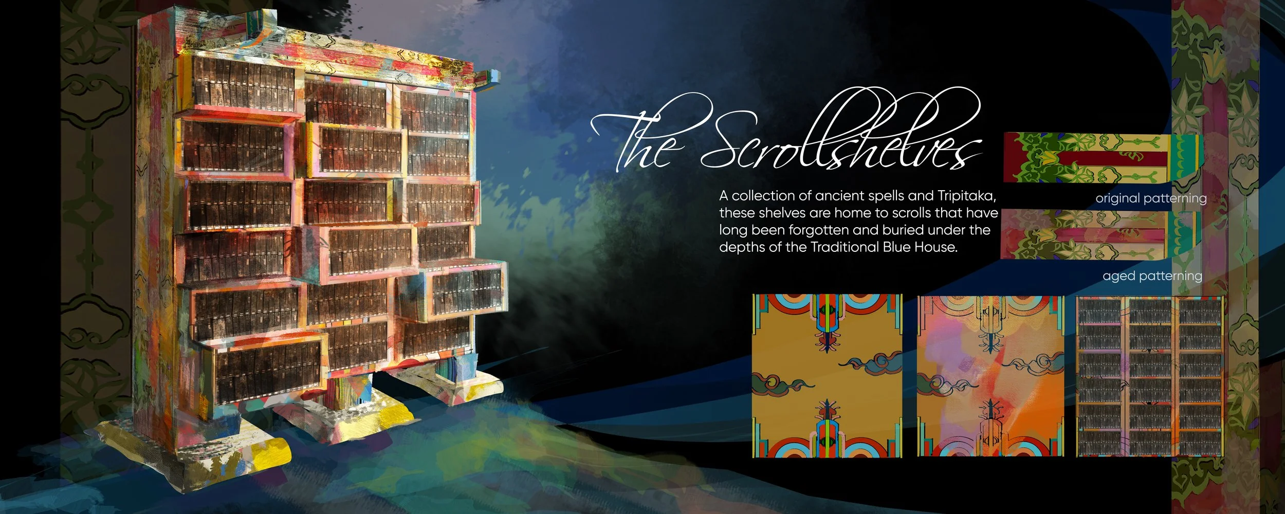 one thousand and one nights is an anthology of middle eastern tales more commonly known as the arabian nights. I am interested in portraying a fairy tale that appears happy at first glance, but is in reality unfortunate. The audience will be taken into a dynamic journey that spans across multiple tales with the royal blue colour of the king’s chamber seeping through her warm, fictional world.