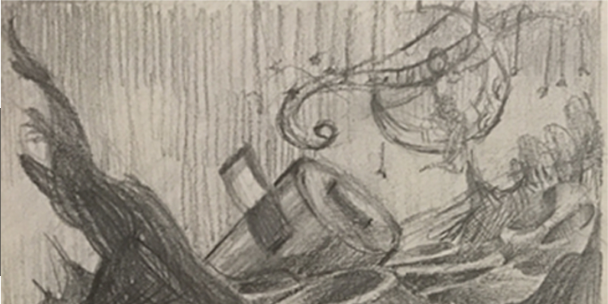 when we are stuck in a creative block, there are no walls or definition that provides a glimpse of a hint into what may become a storyline; there is only nothingness. My challenge is to create a space that is true to the period while accentuating that suffocating nature of an emptiness that seems to point to no visible way out.