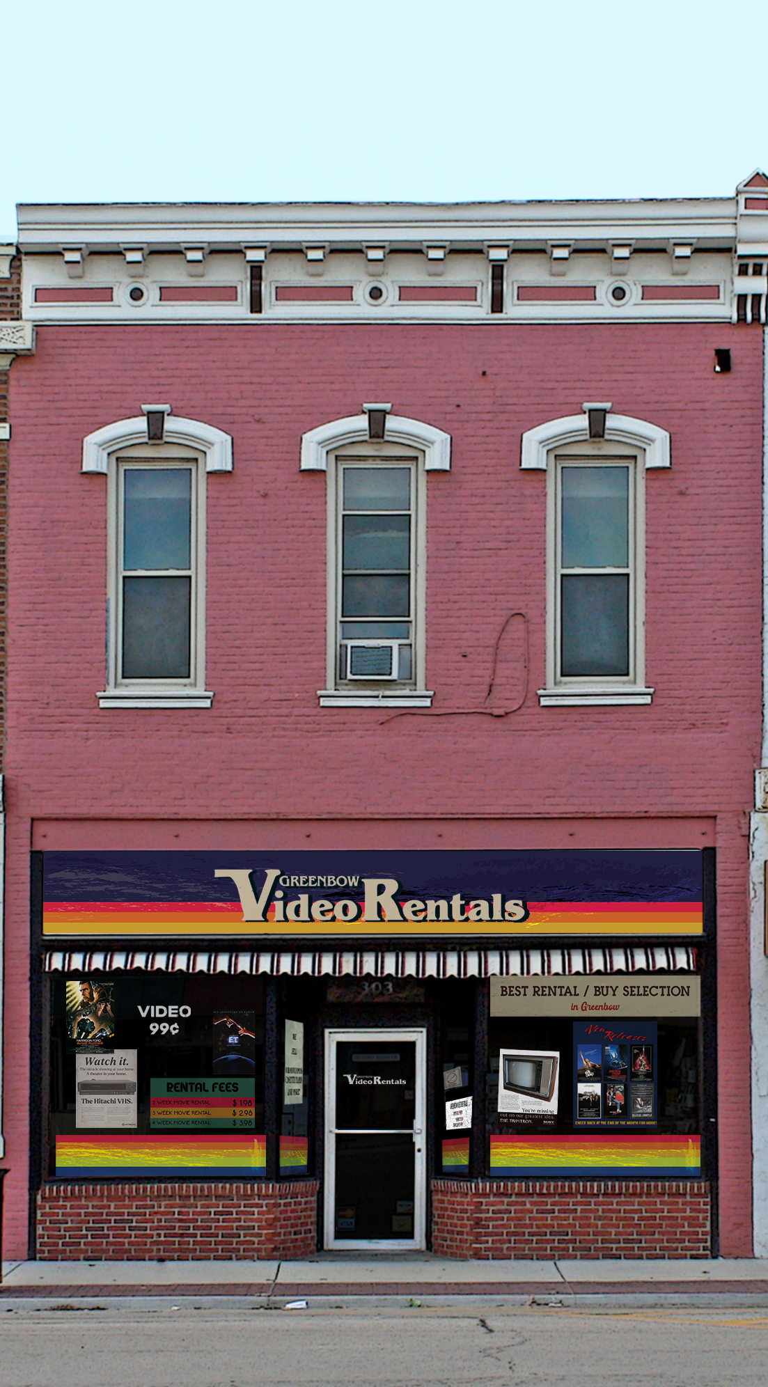 for the forrest gump project, I chose to create graphics for a video store to illustrate my understanding of the period as well as create a convincing 80s backdrop.